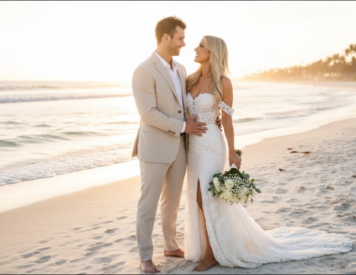 Có thể là hình ảnh về đám cưới và bãi biển