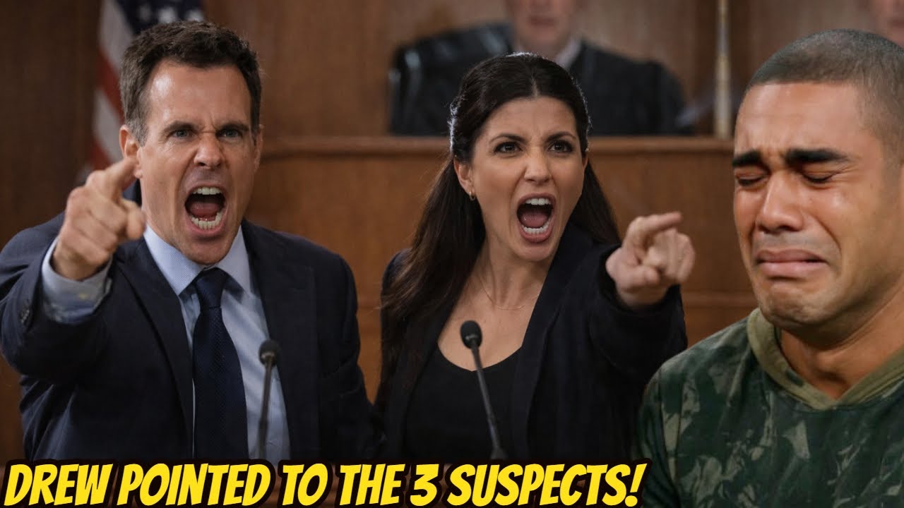 The courtroom gasped as Drew’s finger pointed toward the side of the room where spectators and witnesses waited. Kai Taylor stiffened; Trina Robinson went pale. Drew’s voice, firmer now, confirmed the unthinkable: “I remember seeing them in my house before I was shot.” The revelation stunned everyone. Willow froze, disbelief etched across her face, while Alexis felt the ground shift beneath her strategy.
