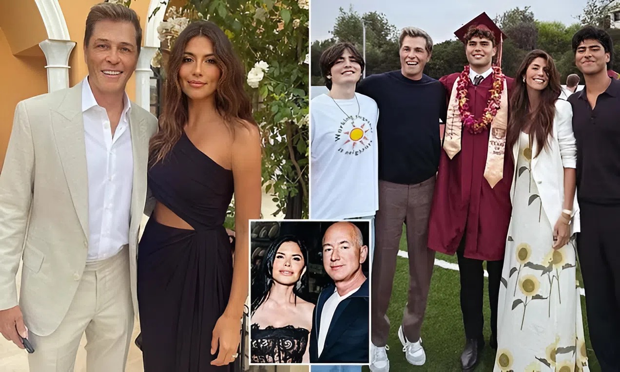 The Home and Away star’s husband Patrick shares two children – son Evan, 19, and daughter Ella, 17 – with Sanchez (left), who is now married to Amazon billionaire Jeff Bezos (right)