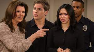 Luna’s panic grows as she pleads to remain free until the baby is born, insisting that the child shouldn’t suffer for her mistakes. But Chief Baker, ever the enforcer of the law, reminds her firmly that pregnancy doesn’t erase her crimes. As he moves to escort her out, Luna resists, crying that she can’t go back to prison—not while carrying a Spencer baby. Her words echo through the room, raw and desperate, but they fall on deaf ears.