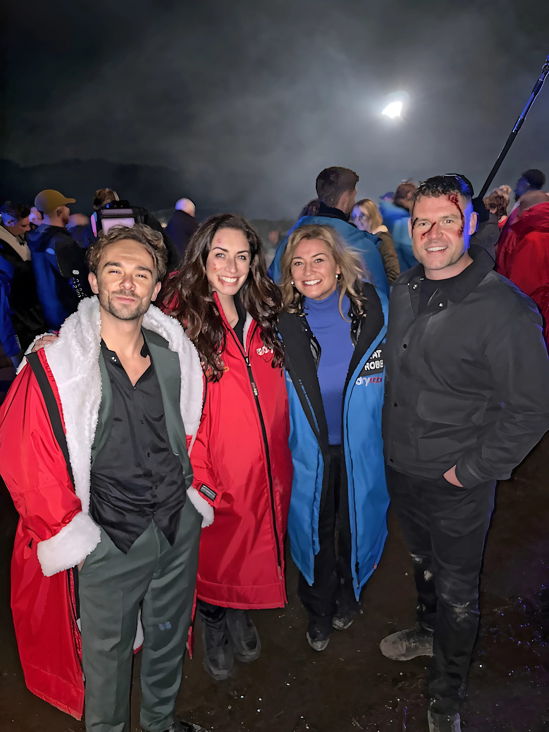 The team were kept wrapped up in warm jackets amid the scenes